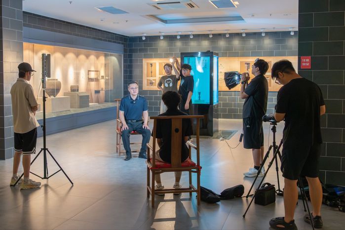 “數(shù)字文博”服務(wù)隊(duì)攜帶專業(yè)單反相機(jī)、4K高清相機(jī)等設(shè)備器材,走進(jìn)城子崖遺址博物館核心展區(qū)、文物修復(fù)工作室及遺址保護(hù)區(qū)。