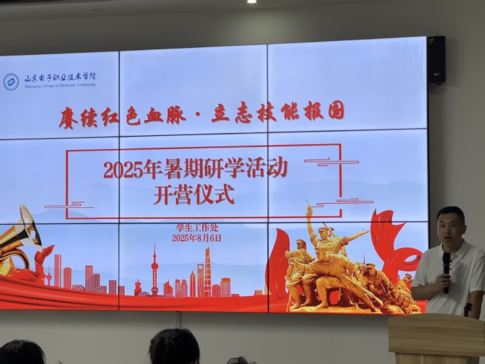 儀式上,此次研學(xué)活動(dòng)的承辦方代表、濟(jì)南舜耕國際旅行社負(fù)責(zé)人孔祥霄介紹了此次研學(xué)活動(dòng)的行程安排和分項(xiàng)學(xué)習(xí)專題內(nèi)容,本次研學(xué)活動(dòng)六天五晚的行程將走到曲阜、臨沂、日照等城市,通過名企參觀、基地研學(xué)等形式,開展工匠精神、愛國主義和傳統(tǒng)文化教育,希望同學(xué)們在踐行專業(yè)知識的基礎(chǔ)上,更好地弘揚(yáng)愛國主義情懷,傳播紅色文化,汲取榜樣力量。