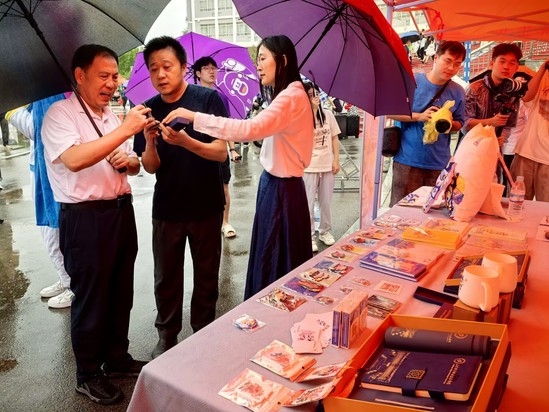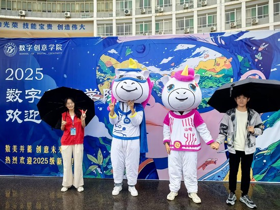 學(xué)校數(shù)字人IP形象“小閃”“小電”的玩偶也驚喜亮相迎新現(xiàn)場,憨態(tài)可掬的造型、活潑可愛的互動(dòng)瞬間吸引了眾多新生和家長的目光。“小閃”“小電”與志愿者、新生熱情合影,主動(dòng)打招呼、送祝福,現(xiàn)場氛圍歡樂融洽。同時(shí),IP形象的亮相也帶動(dòng)了更多新生及家長前往文創(chuàng)產(chǎn)品展示區(qū),大家紛紛駐足觀看、咨詢購買,進(jìn)一步提升了系部文創(chuàng)產(chǎn)品的關(guān)注度,為迎新現(xiàn)場增添了濃厚的文化氛圍與青春活力。