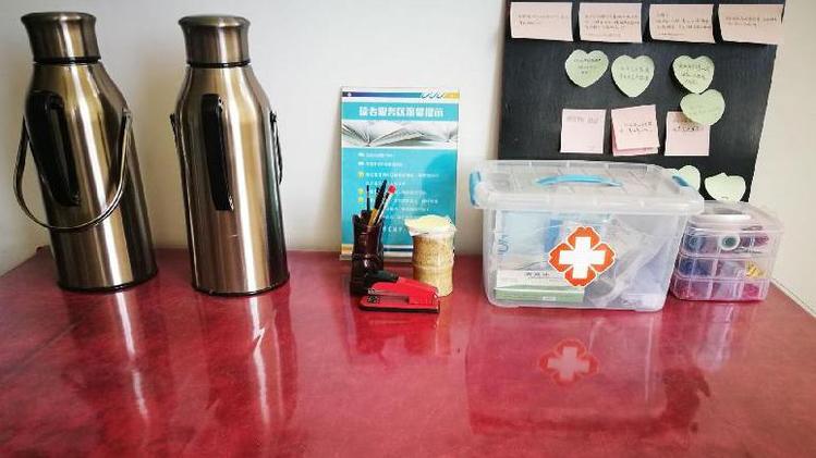 炎炎夏日,為防止蚊蟲叮咬,細(xì)心的徐莉老師在圖書館三樓的讀者服務(wù)區(qū)應(yīng)急藥箱內(nèi)新添置了清涼油;讀者服務(wù)區(qū)的兩個(gè)暖水瓶,冬天的時(shí)候總是裝滿燒開(kāi)的熱水;夏天的時(shí)候則一溫一熱,徐莉老師還貼上了暖心的標(biāo)簽,方便讀者根據(jù)需要飲用。同時(shí)還增設(shè)了訂書機(jī),以備讀者急需。