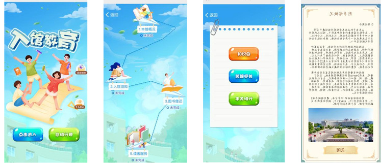 我校圖書館通過(guò)微信公眾號(hào)發(fā)布《2024新生入館須知》,同時(shí)為了增強(qiáng)學(xué)習(xí)的互動(dòng)性和趣味性,與超星聯(lián)合搭建入館教育微信小程序,通過(guò)互動(dòng)闖關(guān)模式讓新生學(xué)習(xí)圖書借閱流程與規(guī)則、電子資源使用等內(nèi)容,全面了解圖書館的各項(xiàng)功能與服務(wù)。