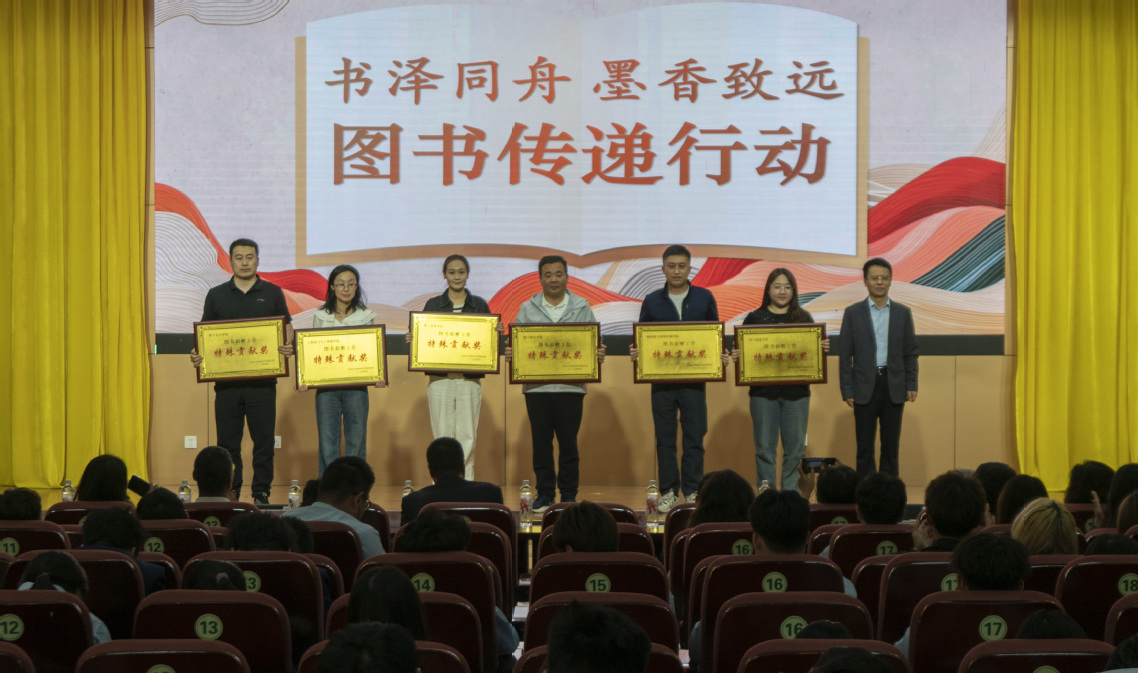 李衛(wèi)東為各院部頒發(fā)了圖書捐贈工作特殊貢獻(xiàn)獎(jiǎng),以表彰在推動校園閱讀文化發(fā)展中表現(xiàn)卓越的師生。圖書館負(fù)責(zé)人為2024年度“閱讀之星”的獲獎(jiǎng)師生頒發(fā)榮譽(yù)證書,并鼓勵(lì)更多師生加入閱讀的行列,共同構(gòu)建書香校園。