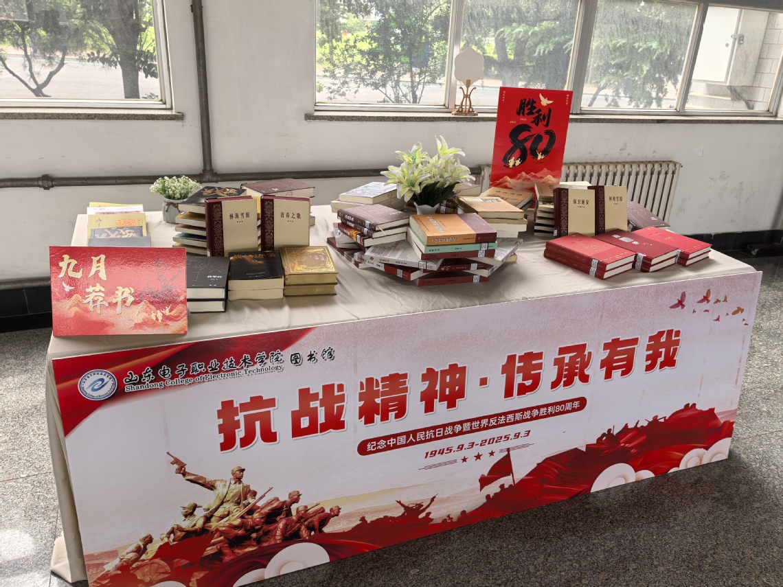 新學(xué)期伊始,適逢中國(guó)人民抗日戰(zhàn)爭(zhēng)暨世界反法西斯戰(zhàn)爭(zhēng)勝利80周年,學(xué)校圖書(shū)館一樓大廳推出“抗戰(zhàn)精神 傳承有我”主題微書(shū)展,以書(shū)籍為媒介,無(wú)聲地傳遞著歷史的厚重與精神的延續(xù)。