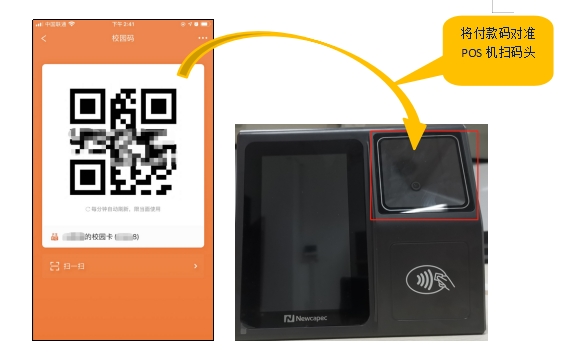 3.進入付款碼頁面,將付款碼對準POS機掃碼頭付款即可。