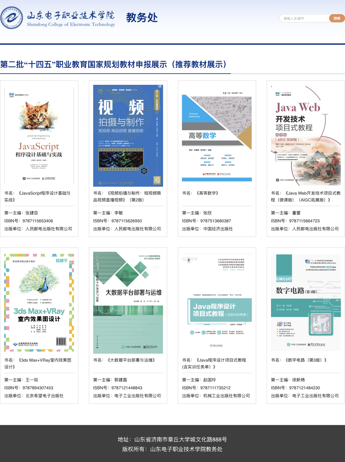 近日,為積極響應國家“十四五”規(guī)劃關(guān)于教育信息化發(fā)展的戰(zhàn)略部署,提升全民數(shù)字素養(yǎng)與技能,根據(jù)學校要求,網(wǎng)絡信息中心加班精心制作并上線了第二批國家“十四五”規(guī)劃教材教務處和數(shù)字商務學院2個申報展示網(wǎng)站。旨在全面展示“十四五”期間職業(yè)教育國家規(guī)劃教材的豐富成果,為評委和廣大教育工作者提供一個便捷、高效的教材查詢與獲取平臺,通過數(shù)字化手段,推動優(yōu)質(zhì)教育資源的共享與傳播,助力學校的高質(zhì)量發(fā)展。(網(wǎng)絡信息中心 王瑞鋒)