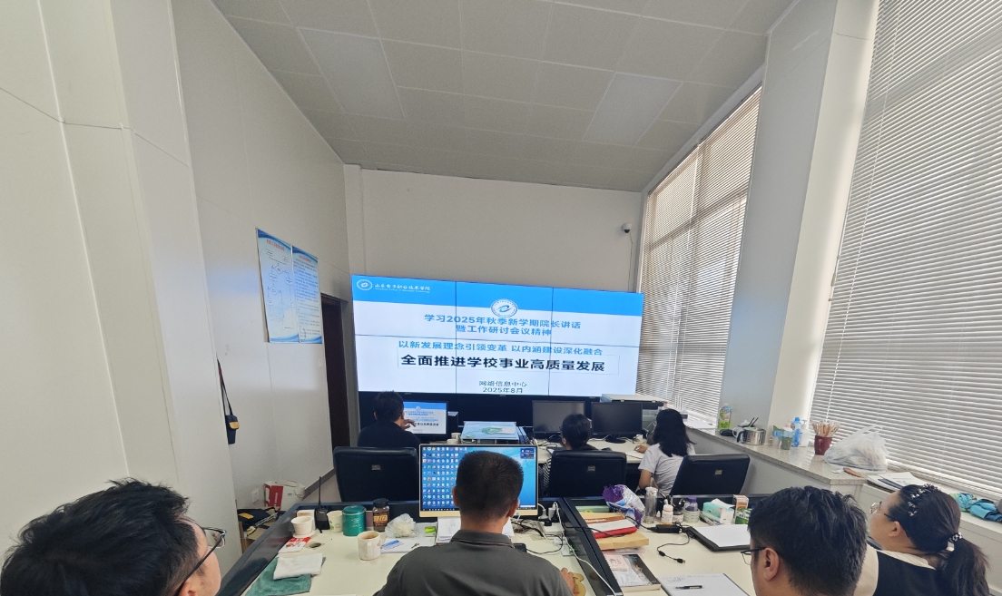 近日,我校召開2025年秋季學(xué)期工作研討會,院長張建臣做了題為《以新發(fā)展理念引領(lǐng)變革 以內(nèi)涵建設(shè)深化融合 全面推進學(xué)校事業(yè)高質(zhì)量發(fā)展》的報告,系統(tǒng)繪制了學(xué)校高質(zhì)量發(fā)展的新藍圖。8月29日下午,網(wǎng)絡(luò)信息中心組織全體教職工開展專題學(xué)習(xí)活動,圍繞院長講話內(nèi)容與會議精神,立足部門職能,研究部署貫徹落實舉措。