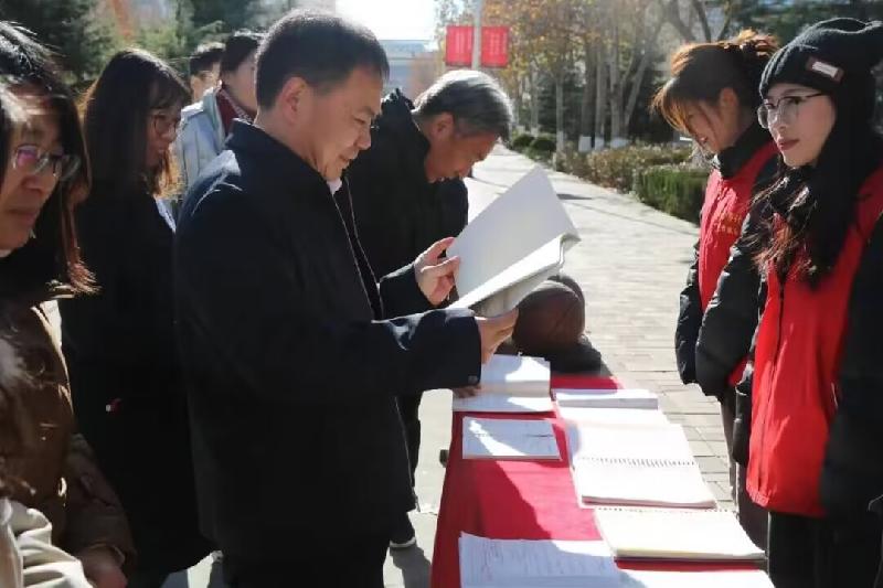 黨的二十大報(bào)告強(qiáng)調(diào),培育創(chuàng)新文化,弘揚(yáng)科學(xué)家精神,涵養(yǎng)優(yōu)良學(xué)風(fēng),營造創(chuàng)新氛圍。2023年11月30日,“弘揚(yáng)科學(xué)家精神落實(shí)兩個‘回歸’”學(xué)風(fēng)涵養(yǎng)主題展覽在山東電子職業(yè)技術(shù)學(xué)院綜合樓南側(cè)主干道正式展出,學(xué)校黨委書記畢叢福、院長張建臣蒞臨現(xiàn)場與師生一同觀展。本次展覽由學(xué)生工作處、計(jì)算機(jī)與軟件工程系及科研中心主辦,“e念思計(jì)”學(xué)風(fēng)涵養(yǎng)工作室和“e路先鋒”輔導(dǎo)員工作室承辦,以弘揚(yáng)科學(xué)家精神為指引,深入落實(shí)我校“教師回歸課堂,學(xué)生回歸教室”的雙回歸精神,引導(dǎo)我校學(xué)子樹立科技報(bào)國志,刻苦學(xué)習(xí)鉆研,勇攀科學(xué)高峰,涵養(yǎng)山電優(yōu)良學(xué)風(fēng)。展覽共設(shè)置科學(xué)家精神、學(xué)風(fēng)建設(shè)成果、優(yōu)秀教案、最美筆記和學(xué)習(xí)用品交流互助五個展區(qū)。
