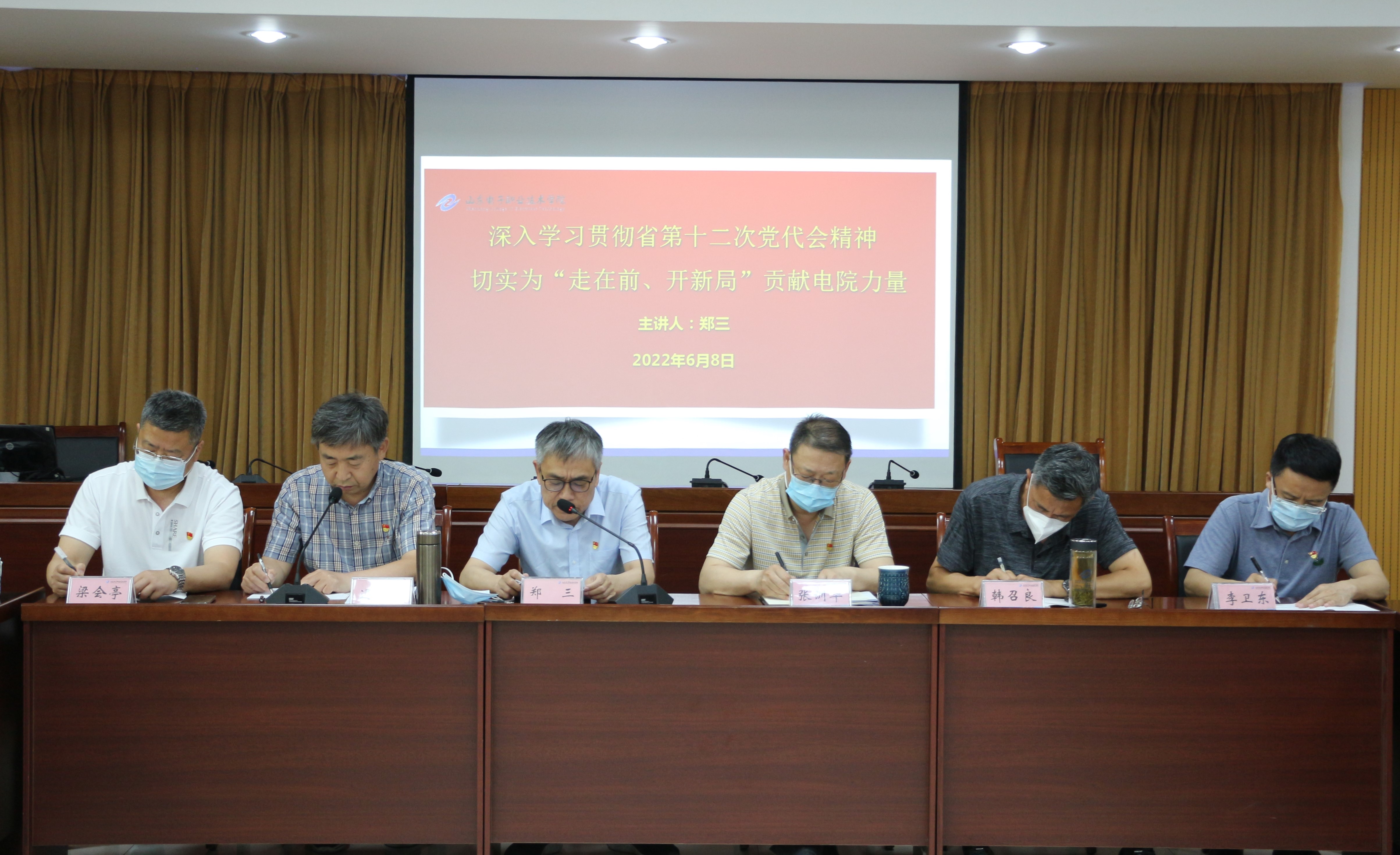 為深入貫徹落實省第十二次黨代會精神,6月8日下午,學校黨委書記鄭三以《深入學習貫徹省第十二次黨代會精神 切實為“走在前、開新局”貢獻電院力量》為題,給全體部門負責人、黨組織書記講授專題黨課。院長張訓華等黨委班子成員參加活動。