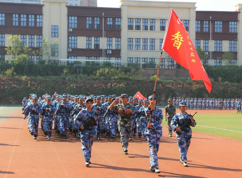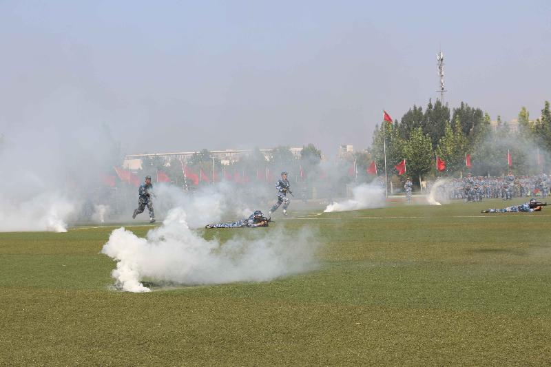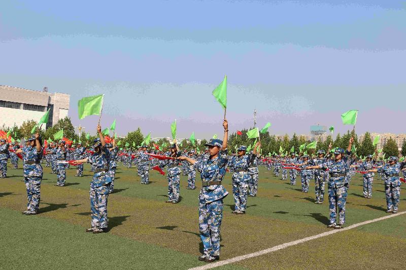 軍訓(xùn)會操由副院長李衛(wèi)東主持,在莊嚴(yán)的國歌聲中會操正式開始。鮮艷的五星紅旗在莊嚴(yán)的國歌聲中冉冉升起,彩旗飄揚,軍樂高奏,12個分列式方隊邁著整齊劃一、鏗鏘有力的步伐,意氣風(fēng)發(fā)地依次通過主席臺接受檢閱,展現(xiàn)著電院學(xué)子軍訓(xùn)錘煉的颯爽英姿和卓越風(fēng)采。伴隨著《黨旗飄揚的方向》的感人歌曲,全體新生在綠茵草坪勝利集結(jié),共同揮舞手中的紅旗,一起吶喊出“請黨放心,強(qiáng)國有我”的鋼鐵誓言和青春理想。