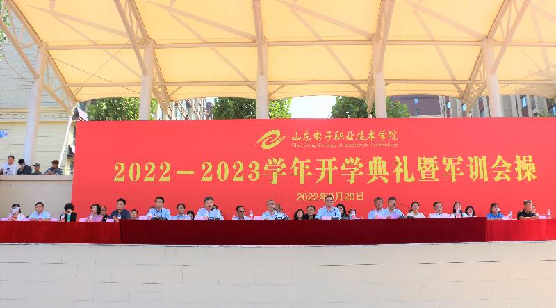 開學(xué)典禮由院長張訓(xùn)華主持,他代表學(xué)校向全體2022級新生表示熱烈的歡迎,宣布山東電子職業(yè)技術(shù)學(xué)院2022—2023學(xué)年開學(xué)典禮正式開始。
