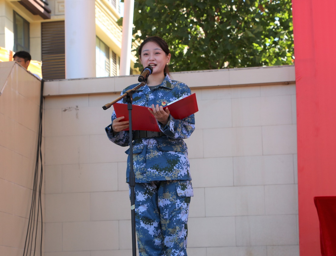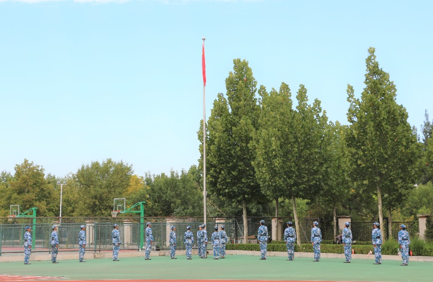 “全體起立,升國旗,奏唱中華人民共和國國歌”,全體參會(huì)人員向國旗行注目禮,軍訓(xùn)會(huì)操在莊嚴(yán)的國歌聲中拉開帷幕。