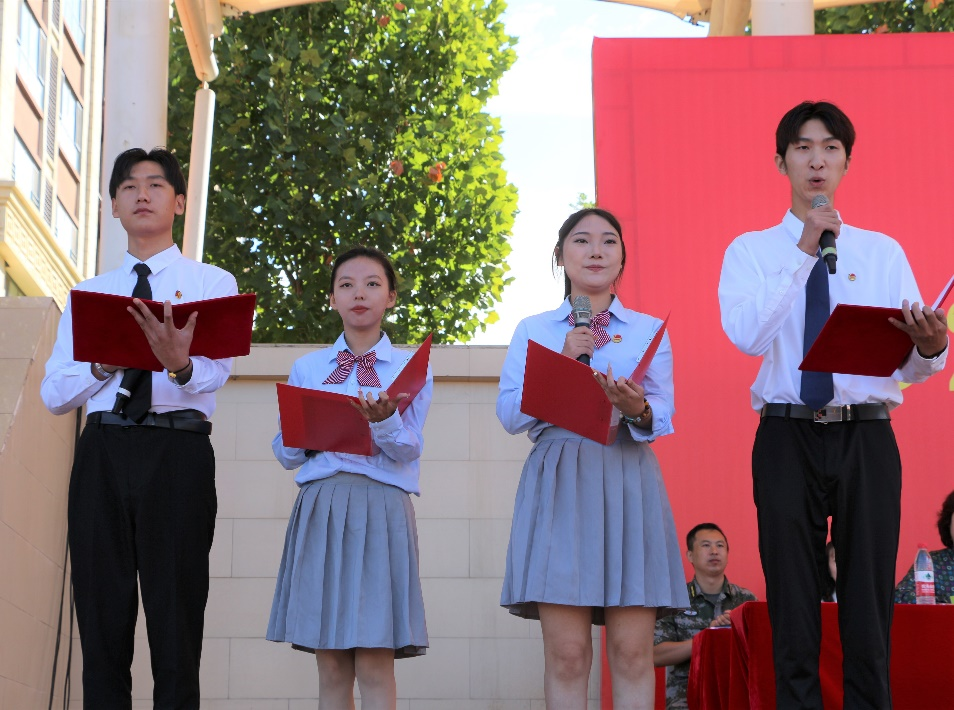 團(tuán)委、學(xué)生會(huì)獻(xiàn)詞,教師代表和新生代表依次上臺(tái)發(fā)言