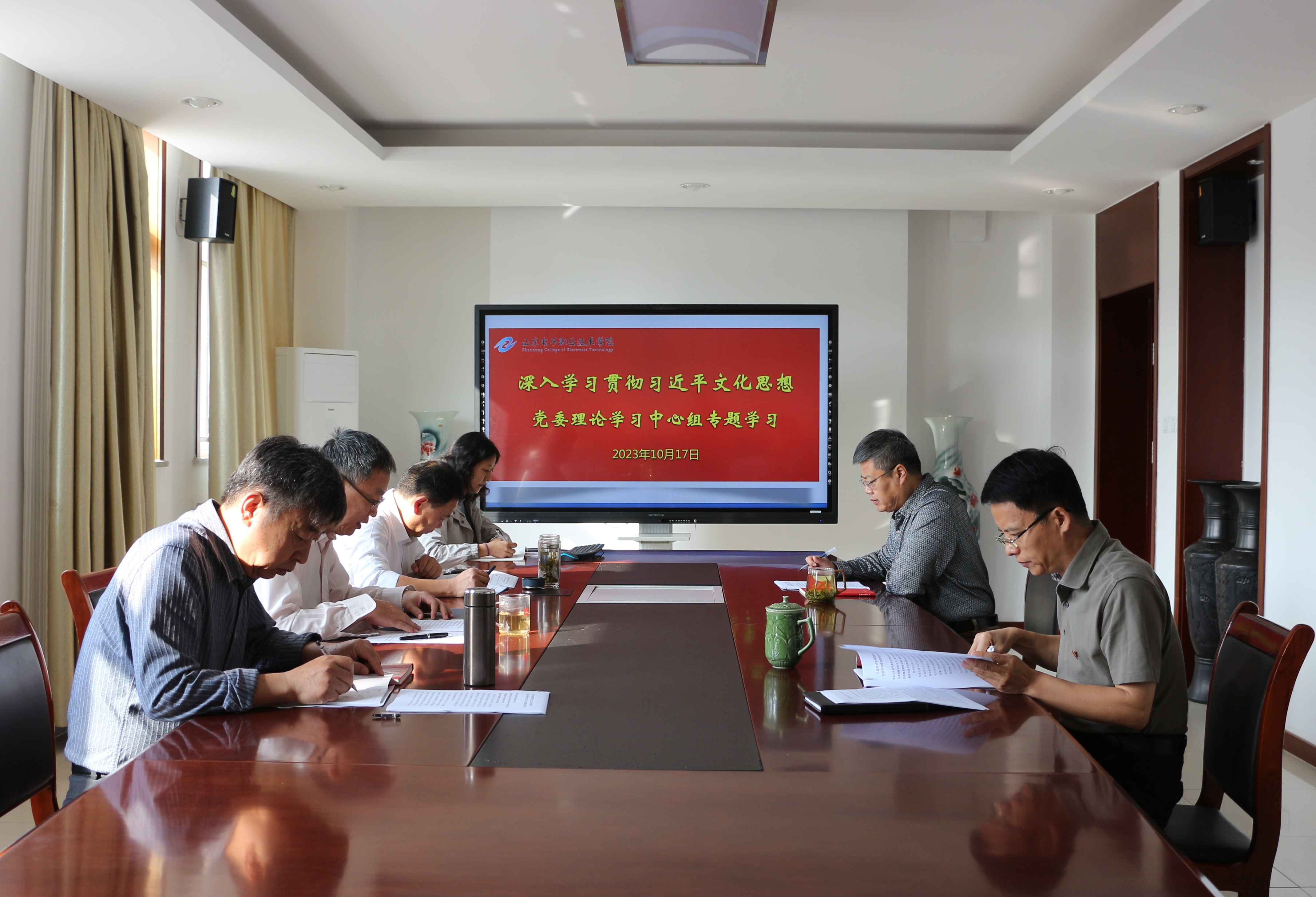 10月17日,學(xué)校黨委理論學(xué)習(xí)中心組開展專題學(xué)習(xí),深入學(xué)習(xí)貫徹習(xí)近平文化思想,學(xué)習(xí)傳達(dá)全國宣傳思想文化工作會(huì)議精神。會(huì)議由黨委書記畢叢福主持,學(xué)校黨委理論學(xué)習(xí)中心組成員參加會(huì)議。