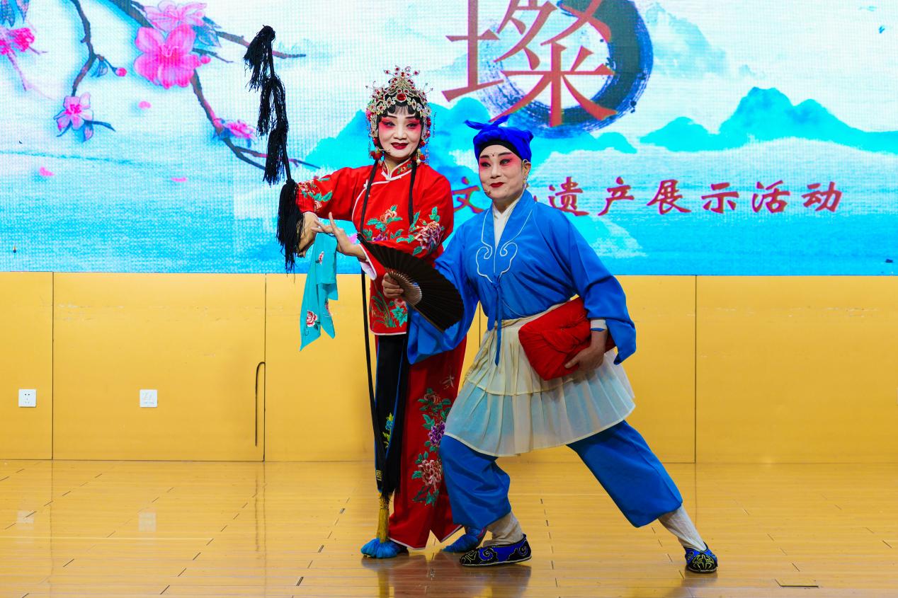 每年六月的第二個周六,是國家文化和自然遺產日,為了更好地助力中華優(yōu)秀傳統(tǒng)文化活態(tài)發(fā)展,讓師生全方位體驗非物質文化遺產的魅力,6月11日,學校舉辦了“璀璨·傳承”非物質文化遺產展示活動。活動現(xiàn)場,除了書法、紙扇、繡品、編織等學生社團展示的技藝以外,還特地邀請了兩位濟南市非遺傳承人——章丘區(qū)青野五音戲劇團的張霞女士和三澗溪體育發(fā)展中心的張成先生。