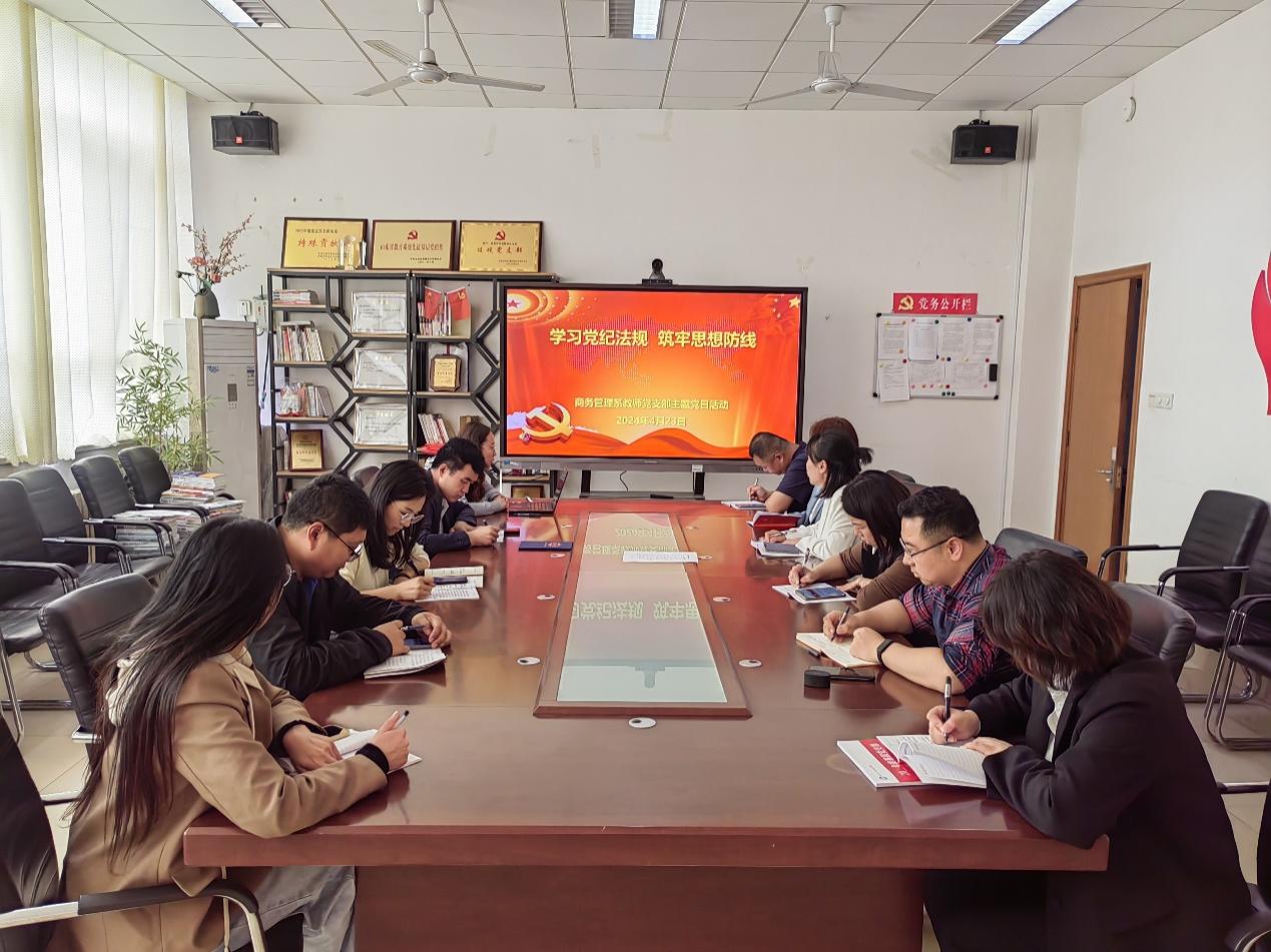 為深入學(xué)習(xí)貫徹習(xí)近平總書(shū)記關(guān)于黨紀(jì)學(xué)習(xí)教育重要講話(huà)和重要指示精神,認(rèn)真落實(shí)學(xué)校黨委有關(guān)《中共山東電子職業(yè)技術(shù)學(xué)院委員會(huì)關(guān)于開(kāi)展黨紀(jì)學(xué)習(xí)教育的實(shí)施方案》要求,進(jìn)一步增強(qiáng)教師黨員學(xué)紀(jì)、知紀(jì)、明紀(jì)、守紀(jì)的底線(xiàn)思維,推進(jìn)清廉學(xué)校建設(shè)。2024年4月23日下午,商務(wù)管理系教師黨支部在綜合樓408會(huì)議室開(kāi)展《學(xué)習(xí)黨紀(jì)法規(guī) 筑牢思想防線(xiàn)》黨紀(jì)學(xué)習(xí)教育主題黨日活動(dòng)。