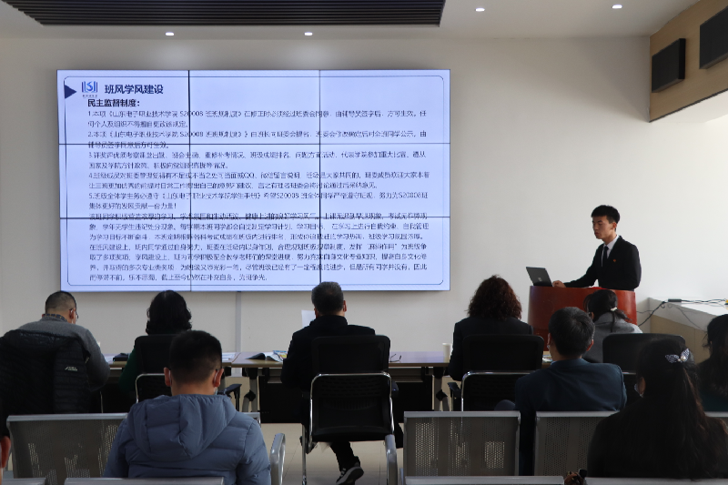 根據(jù)《山東省教育廳關(guān)于評選高等學(xué)校優(yōu)秀學(xué)生 優(yōu)秀學(xué)生干部和先進(jìn)班集體的通知》要求,經(jīng)各系初評、學(xué)生工作處審核,共有6個班級參加本次答辯。答辯班級代表通過PPT匯報了所在班級開展各類活動以及班風(fēng)、學(xué)風(fēng)建設(shè)情況介紹了一年來取得的成績和獲得的榮譽,展現(xiàn)了班級的良好風(fēng)貌,贏得了評委的認(rèn)可和在場師生們熱情的掌聲。經(jīng)評委現(xiàn)場評審打分,最終評選出電子與通信工程系D20001班和數(shù)字媒體系S20008班獲得2021年度省級先進(jìn)班集體推薦資格。