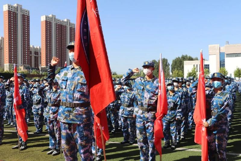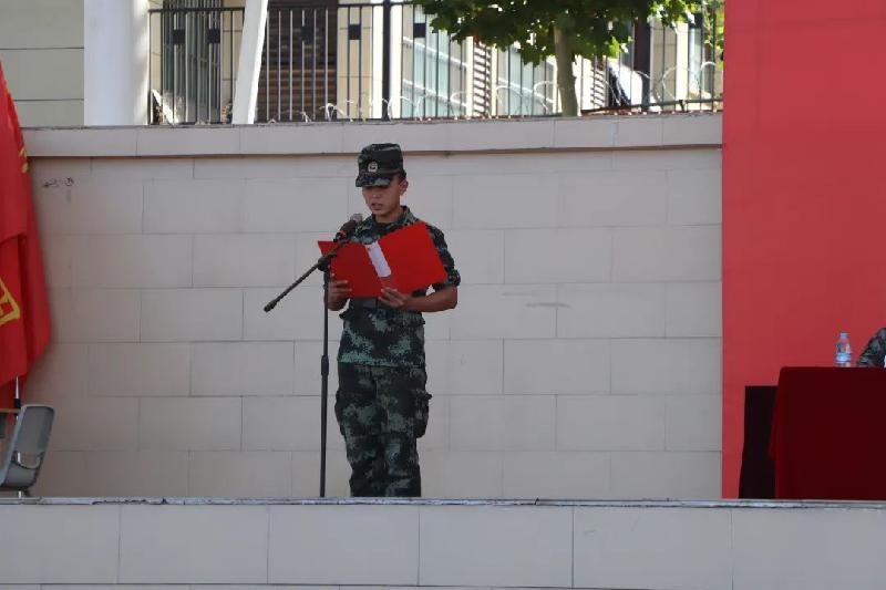 教官李睿哲帶領(lǐng)2022級(jí)新生宣誓:服從命令,聽從指揮,尊重教官,刻苦訓(xùn)練,恪守紀(jì)律,不怕困難,團(tuán)結(jié)友愛,努力學(xué)習(xí),自強(qiáng)不息,知行合一,立志成才,報(bào)效祖國。