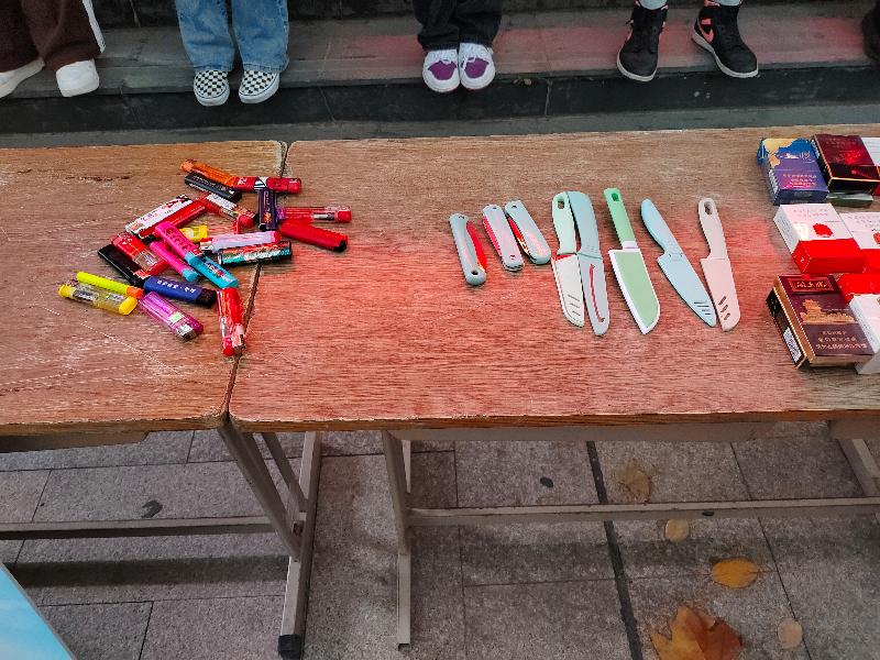 11月9日下午,學(xué)生公寓服務(wù)中心全體學(xué)生干部在餐廳廣場(chǎng)前進(jìn)行了違禁物品展示。本次展出的內(nèi)容包括大功率電鍋、酒精瓶、發(fā)膠、火機(jī)、煙、管制刀具等物品。本次展示意義重大,讓同學(xué)們了解到什么是公寓違禁品,以及使用違禁品對(duì)人身造成的危害,大大提高同學(xué)們對(duì)安全的認(rèn)知。
