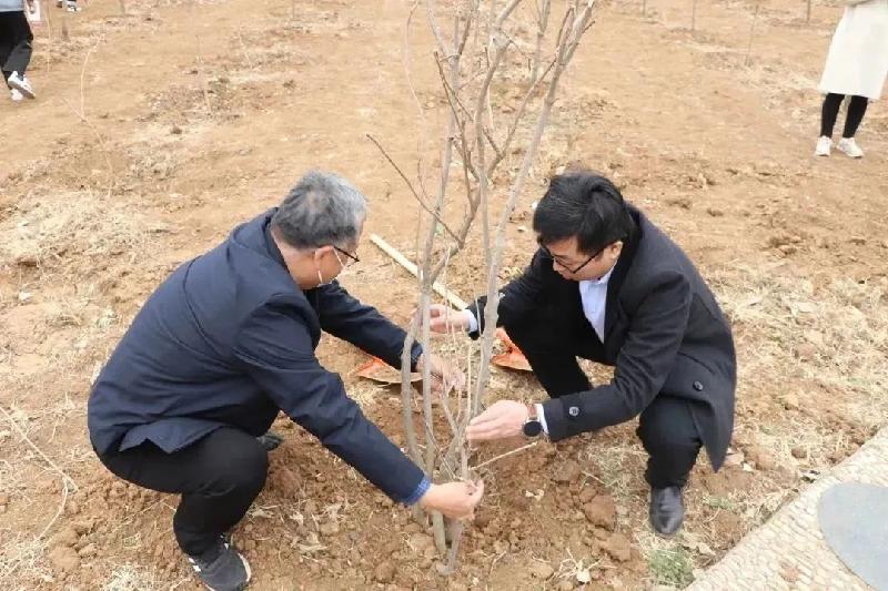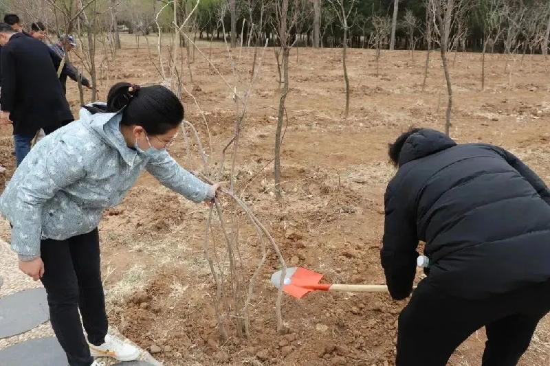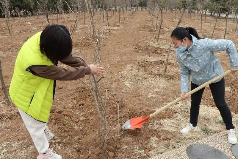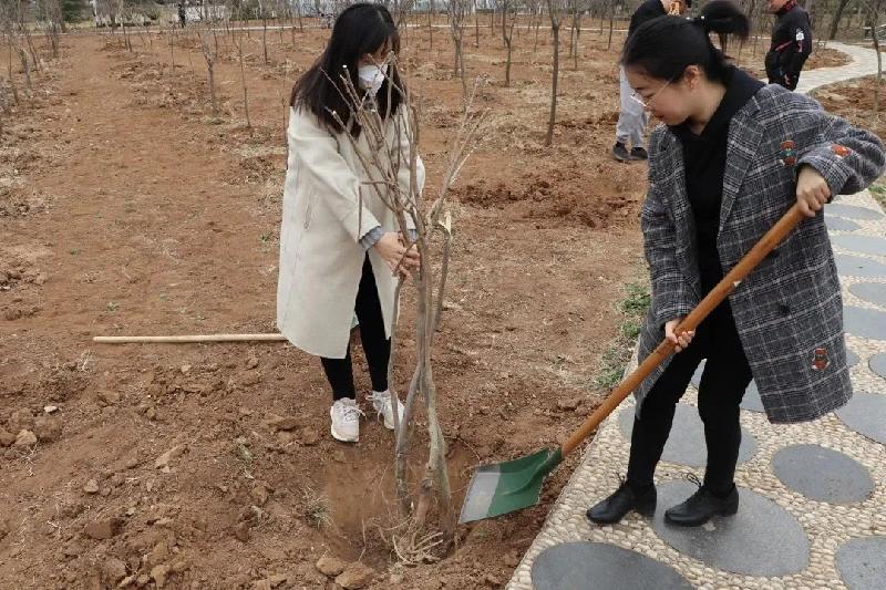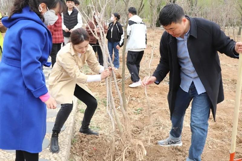 植樹活動(dòng)現(xiàn)場,大家分工協(xié)作,默契配合。有的栽插、扶正樹苗,有的揮鐵鍬、鏟土培實(shí)......呈現(xiàn)出一派忙碌有序的勞動(dòng)景象。經(jīng)過一番勞作,一顆顆樹苗迎風(fēng)挺立,呈現(xiàn)出一派“春回大地萬物蘇”的美好春光。
