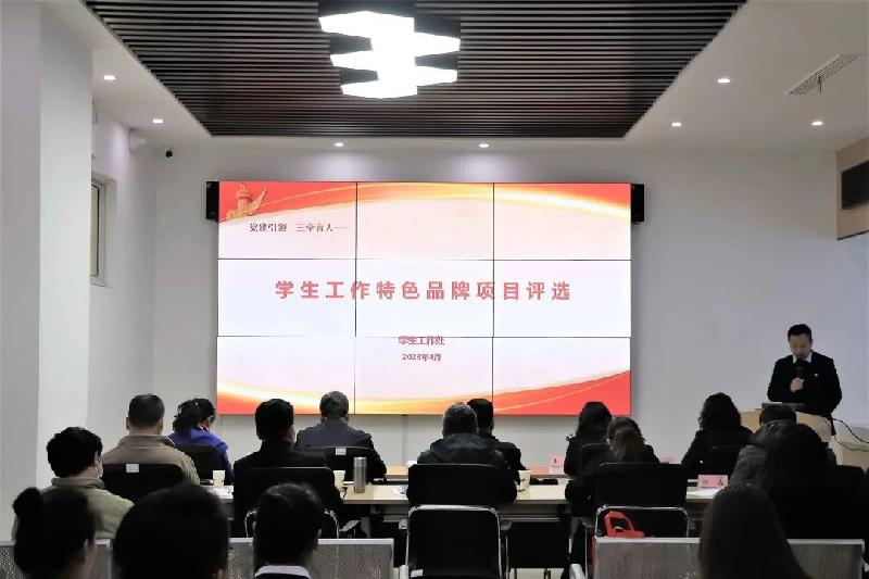 為深入學(xué)習(xí)宣傳貫徹黨的二十大精神,貫徹落實(shí)全國(guó)高校思想政治工作會(huì)議和習(xí)近平總書(shū)記關(guān)于高校思想政治工作系列重要論述精神,總結(jié)凝練學(xué)生工作典型經(jīng)驗(yàn)及優(yōu)秀成果,著力打造具有校本特色的大學(xué)生思想政治教育品牌活動(dòng),根據(jù)學(xué)校“三全育人”工作整體部署,學(xué)校于4月7日上午,在學(xué)生“一站式”服務(wù)大廳舉行2022年度“學(xué)生工作特色品牌項(xiàng)目”評(píng)選活動(dòng),宣傳統(tǒng)戰(zhàn)部、學(xué)生工作處、團(tuán)委負(fù)責(zé)人,各系黨總支書(shū)記、副書(shū)記擔(dān)任評(píng)委。