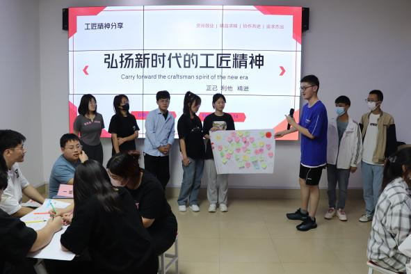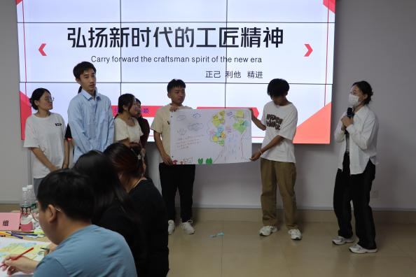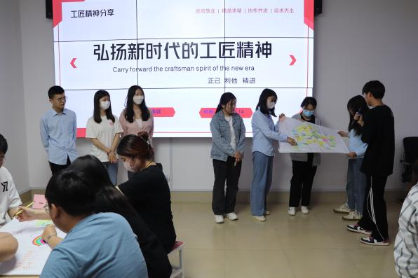 14日培訓專題為《弘揚新時代的工匠精神》,從四個方面闡述了工匠精神的內(nèi)涵、意義,如何弘揚新時代的工匠精神,以及個人如何培養(yǎng)工匠精神。培訓中,通過分組合作的形式,每個隊伍建立確定了自己的隊名隊形,同學們積極參與互動,配合老師的問題深入思考、踴躍作答,在游戲中增強了團隊合作的默契,培養(yǎng)了同學們的溝通能力和團隊意識,深刻了解工匠精神的涵義。
