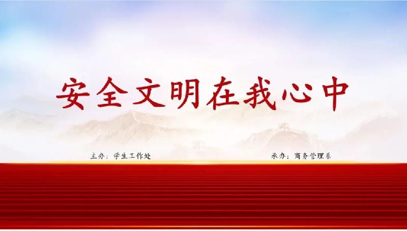 為進一步提高我校學(xué)生安全和文明意識,根據(jù)學(xué)生工作處工作安排,5月17日,商務(wù)管理系組織舉辦“安全文明在我心中”為主題的演講比賽。