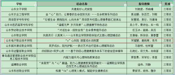 近日,山東省高等學(xué)校思想政治教育研究會大學(xué)生心理健康教育專委會公布《2023年山東省高校心理健康教育月展示活動評選結(jié)果》,我校師生在此次活動中斬獲佳績,共有8項作品獲獎,其中一等獎2項,三等獎6項。