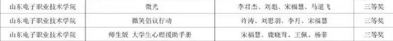 目前,專委會(huì)公布了2023年山東省高校心理健康教育月展示活動(dòng)評(píng)選結(jié)果,我校榮獲省級(jí)榮譽(yù)一等獎(jiǎng)2項(xiàng),三等獎(jiǎng)6項(xiàng),所獲獎(jiǎng)項(xiàng)在高職院校內(nèi)位居前列。