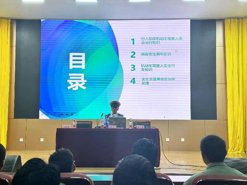 劉警官結(jié)合具體案例,注重理論與實(shí)際相結(jié)合,從“行人和非機(jī)動(dòng)車(chē)駕駛?cè)税踩鲂兄R(shí)、乘客安全乘車(chē)知識(shí)、機(jī)動(dòng)車(chē)駕駛?cè)税踩熊?chē)知識(shí)、發(fā)生交通事故后如何處理”四個(gè)方面為同學(xué)們進(jìn)行了深入淺出的講解。同時(shí),與同學(xué)們進(jìn)行了關(guān)于交通安全等方面的交流,整場(chǎng)講座內(nèi)容豐富、生動(dòng)有趣,具有很強(qiáng)的警示力和感染力。