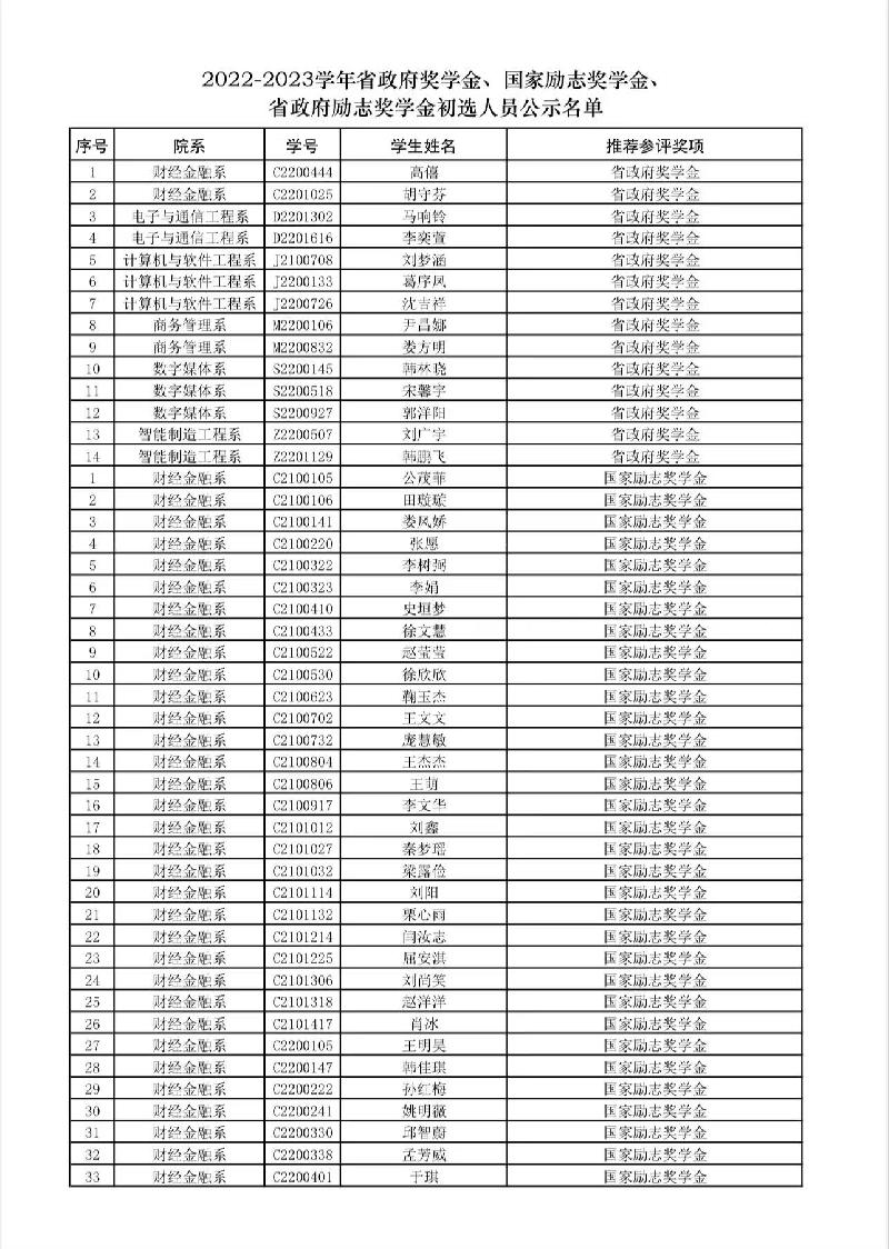 2022-2023學(xué)年省政府獎(jiǎng)學(xué)金、國(guó)家勵(lì)志獎(jiǎng)學(xué)金、省政府勵(lì)志獎(jiǎng)學(xué)金初選人員公示名單
