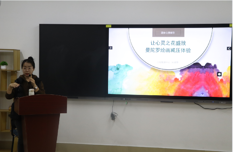 宋老師首先介紹了曼陀羅繪畫的發(fā)展歷程以及在心理學(xué)方面的應(yīng)用。接著,帶領(lǐng)大家完成5分鐘的覺察情緒的冥想練習(xí),幫助同學(xué)們將注意力集中在身體感覺上,在冥想中讓自己沉靜,專注于自我。