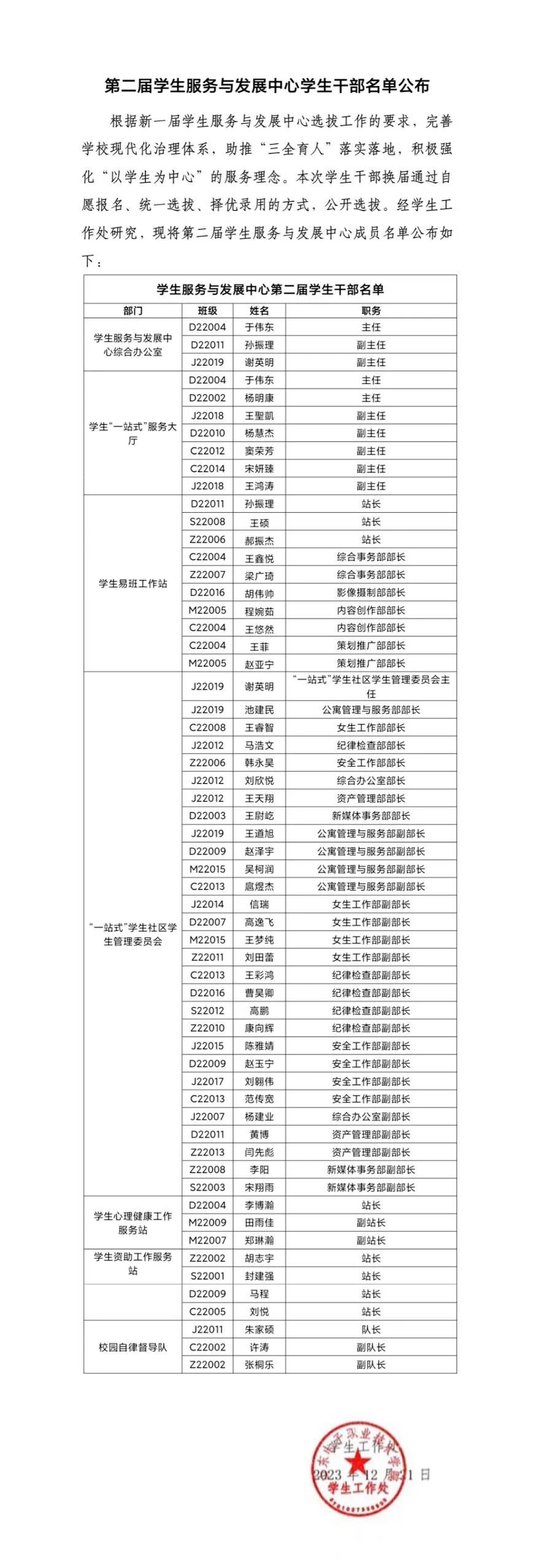 第二屆學(xué)生服務(wù)與發(fā)展中心學(xué)生干部名單公布