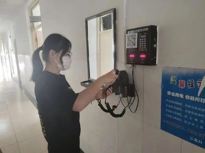 最后,同學們用酒精噴霧,對各樓道內的吹風機、飲水機以及公共盥洗室內的水龍頭進行了消毒,使同學們能在疫情期間放心使用公共設施。