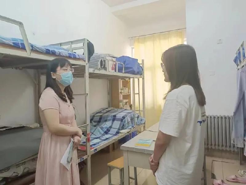 隨后,張弛老師和學生公寓服務中心的學生走進學生公寓,與在宿同學交流談心,關心他們的日常生活,詢問大家有無實際生活上的困難,并向同學們贈送了精美的圖書,為同學們送去一份溫暖,緩解了同學們的備考壓力,使同學們感受到了學生公寓為學生服務的理念與貼心關懷。