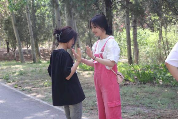 第一個環(huán)節(jié)——推手游戲,兩人伸出胳膊,四掌相對,通過保持平衡時長獲得勝利。通過這個游戲,提高了同學(xué)們身體協(xié)調(diào)能力,幫助同學(xué)們感受關(guān)系的沖突和壓力,并學(xué)會如何處理這種沖突。
