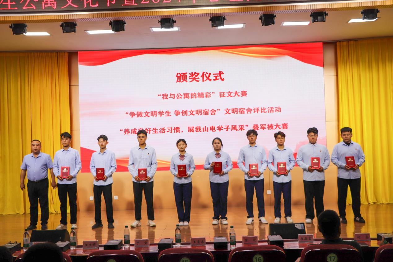 學(xué)生工作處負(fù)責(zé)人宣讀第十二屆公寓文化節(jié)和心理健康教育月活動(dòng)表彰決定并講話。典禮中展示了第十二屆公寓文化節(jié)和心理健康教育月系列活動(dòng)的豐碩成果,對(duì)評(píng)選出的活動(dòng)單項(xiàng)獎(jiǎng)、優(yōu)秀指導(dǎo)教師和優(yōu)秀組織獎(jiǎng)等先進(jìn)個(gè)人和集體,進(jìn)行現(xiàn)場(chǎng)頒獎(jiǎng)。