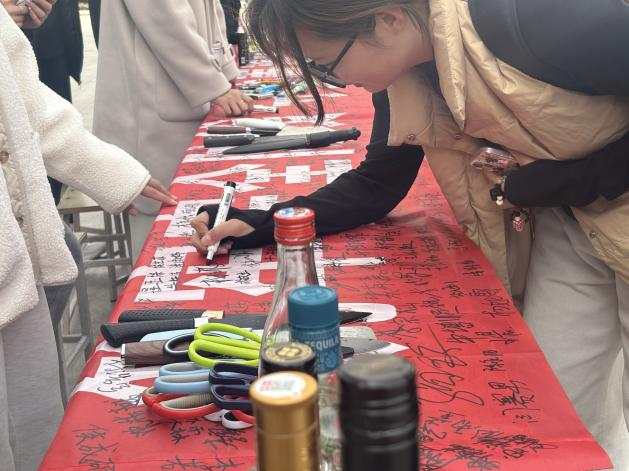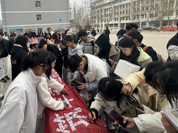 活動(dòng)前期,宿舍樓前赫然懸掛起朱紅底色的安全警示橫幅,"安全校園你我共建,違規(guī)物品拒之門外""隱患即事故,防范始于心"等鏗鏘標(biāo)語如警鐘長鳴。過往學(xué)生或踮腳細(xì)讀安全守則,或執(zhí)筆在承諾墻上鄭重簽下姓名,筆墨間流淌著對規(guī)則的敬畏與守護(hù)。這面凝結(jié)著千余簽名的承諾墻,不僅成為校園文明公約的立體見證,更在春風(fēng)中傳遞著"安全無小事"的共識。