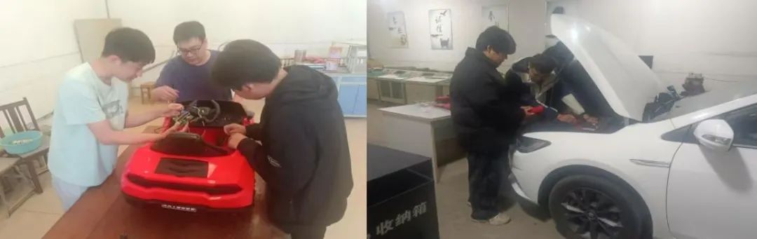 “三位一體”導(dǎo)師協(xié)同育人模式是“1412”團(tuán)隊(duì)成長(zhǎng)的有力保障。輔導(dǎo)員李麗麗時(shí)刻關(guān)注成員思想動(dòng)態(tài),用鼓勵(lì)與引導(dǎo)激發(fā)團(tuán)隊(duì)成員的斗志;學(xué)業(yè)導(dǎo)師李光舉憑借深厚專業(yè)知識(shí),帶領(lǐng)成員嘗試新算法和技術(shù)方案;班主任劉金國(guó)則積極協(xié)調(diào)各方資源,全力保障項(xiàng)目順利推進(jìn)。在導(dǎo)師們的協(xié)同助力下,團(tuán)隊(duì)圍繞電機(jī)與電池系統(tǒng),貫通“設(shè)計(jì) - 研發(fā) - 制造 - 測(cè)試”流程,將理論知識(shí)轉(zhuǎn)化為實(shí)訓(xùn)教具。在“陪伴式成長(zhǎng)”模式下,學(xué)生不僅掌握了車輛維護(hù)等技能,還培養(yǎng)出系統(tǒng)化工程思維。團(tuán)隊(duì)內(nèi)形成“共研共進(jìn)”生態(tài),導(dǎo)師用經(jīng)驗(yàn)破解難題,學(xué)生以靈感推動(dòng)創(chuàng)新,師生共同傳承工匠精神、共育職業(yè)理想。