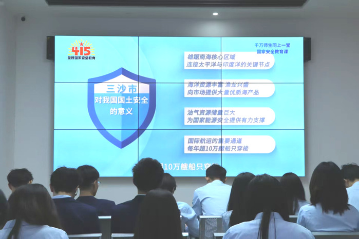 專題講解結束后,全體人員共同觀看由教育部指導推出的《千萬師生同上一堂國家安全教育課》。課程邀請中國南海研究院王勝教授、山東大學馬克思主義學院(威海)郝書翠教授、北京郵電大學網(wǎng)絡空間安全學院付俊松副教授聯(lián)合講授,聚焦當前國際形勢下的國家安全挑戰(zhàn),從海洋權益維護、意識形態(tài)安全、網(wǎng)絡空間治理等維度展開深度分析。課程通過真實影像資料與互動問答形式,強調(diào)高校師生在維護國家安全中的特殊使命,號召青年群體以“居安思危”的憂患意識和“躬身力行”的擔當精神,爭做國家安全的“宣傳者”和“守護者”。