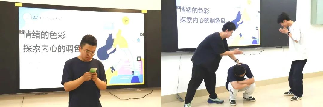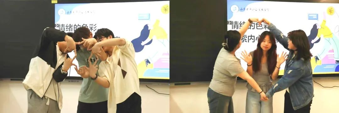 作為情緒認知的深化環(huán)節(jié),“情緒魔盒”游戲通過抽選情緒卡片,引導同學們用微表情與肢體語言進行具身化表達。當“應對錦囊”環(huán)節(jié)揭曉“情緒管理ABC理論”“正念冥想”“運動解壓”等科學調(diào)節(jié)法時,不少同學認真記錄著這些改善不良情緒的實用工具。