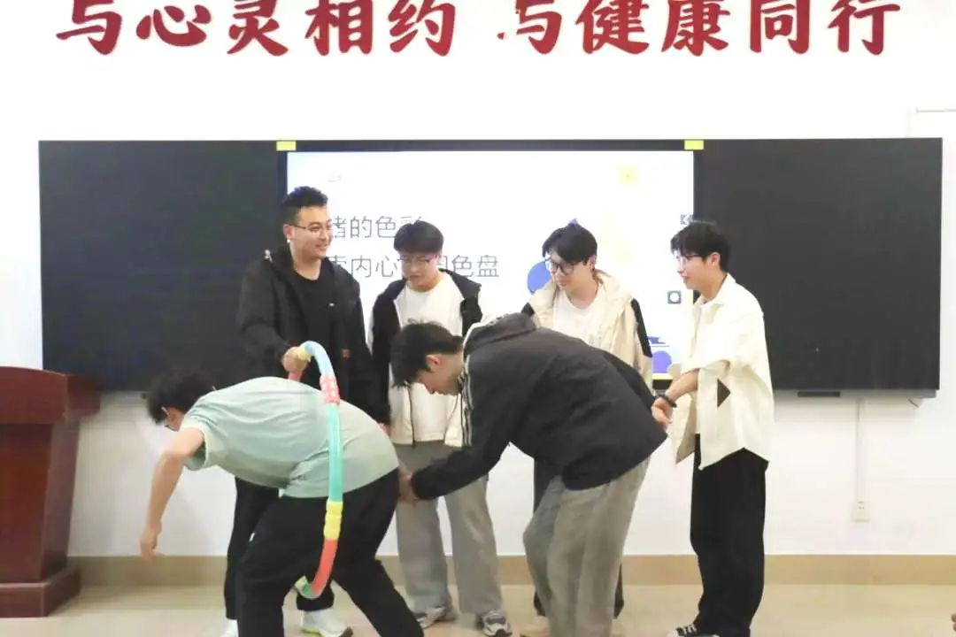 活動以“套呼啦圈”破冰游戲拉開序幕。小組同學手挽手圍成同心圓,讓彩色呼啦圈如漣漪般在人群間流轉(zhuǎn)。當某個成員因緊張卡頓時,此起彼伏的“慢慢來、向左抬腳”等提示聲,讓協(xié)作的溫度驅(qū)散了初見的拘謹。
