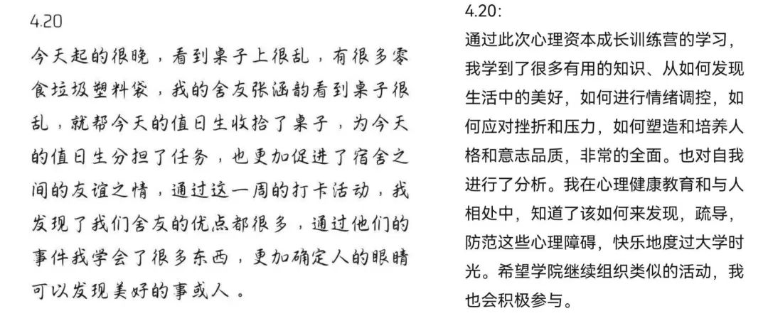 發(fā)現(xiàn)生活的美好模塊,學(xué)生通過記錄“三件好事”、拍攝“溫暖瞬間”,挖掘生活幸福元素,結(jié)合情緒分享與主題研討,建立積極思維模式。學(xué)會(huì)壓力的應(yīng)對(duì)模塊,學(xué)生梳理壓力源,制定應(yīng)對(duì)策略,提升壓力管理能力。營造和諧人際關(guān)系模塊,通過“優(yōu)點(diǎn)轟炸”與團(tuán)隊(duì)優(yōu)勢(shì)畫像活動(dòng),增進(jìn)了解與信任,提升溝通協(xié)作能力。實(shí)現(xiàn)自我成長突破模塊,引導(dǎo)學(xué)生通過感恩日記與品格優(yōu)勢(shì)挖掘,助力學(xué)生梳理潛能,超九成學(xué)員制定成長計(jì)劃。