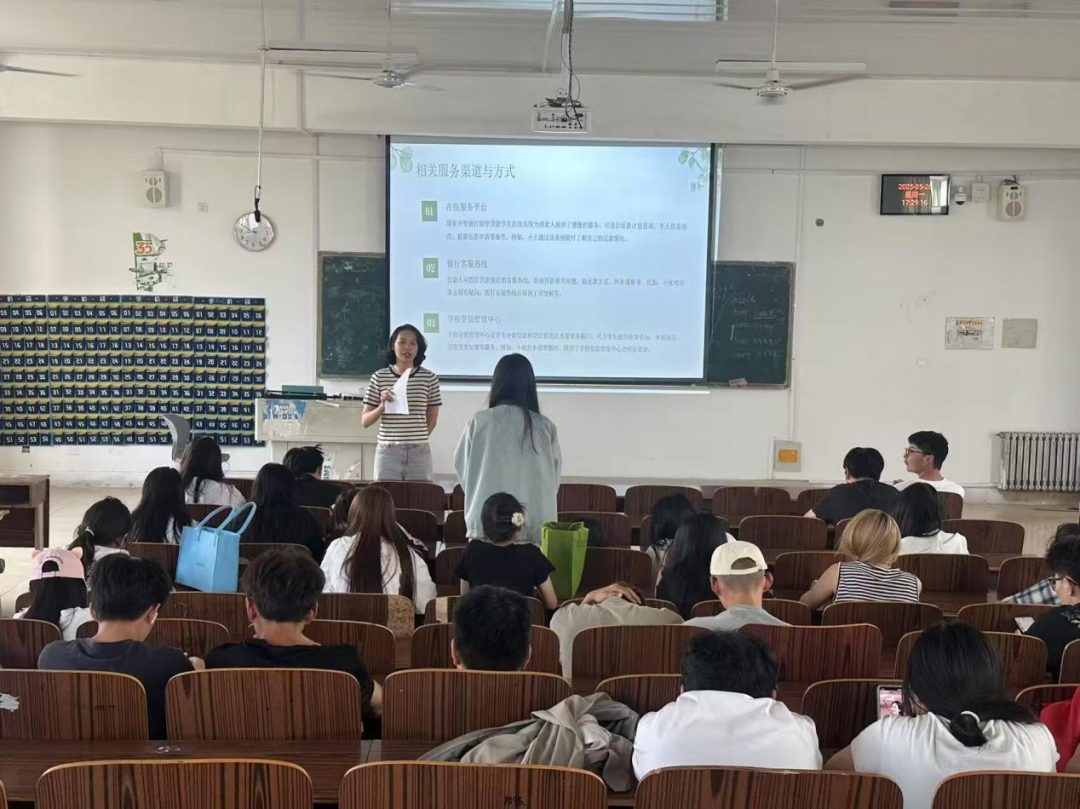 宣講會上,袁亞飛老師以專業(yè)、細致的視角,對國家生源地助學(xué)貸款政策進行了全方位解讀。從申請條件的明確界定,到辦理流程的詳細梳理;從還款方式的多樣選擇,到優(yōu)惠政策的貼心解讀,袁老師深入淺出地講解了每一個關(guān)鍵要點。同時,結(jié)合實際案例開展金融安全警示教育,著重強調(diào)了誠信還款的必要性以及逾期還款對個人征信可能帶來的嚴(yán)重不良影響,積極引導(dǎo)學(xué)生們樹立誠信意識,為未來的信用生活筑牢根基。