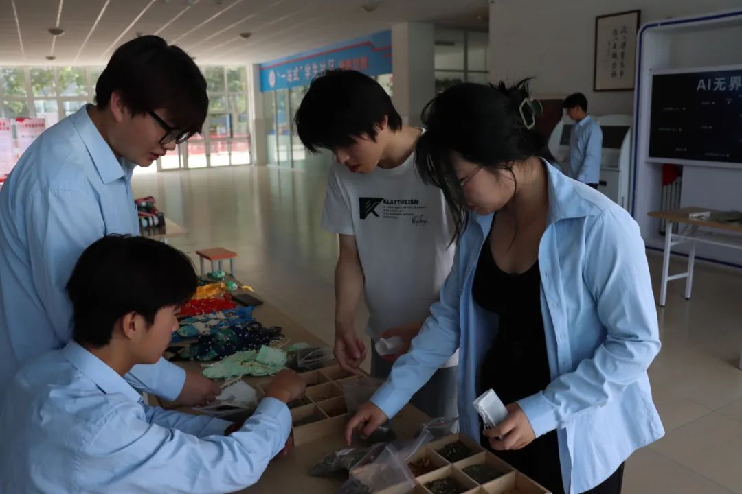 古人佩香囊以辟邪驅(qū)瘟,“艾葉香囊”體驗(yàn)區(qū)重現(xiàn)這份儀式感。同學(xué)們精選艾葉、丁香等香料,配制香囊。藥香裊裊,大家手中的每只香囊都寄托著祛病除災(zāi)、順?biāo)彀部档拿篮迷妇啊?/span>