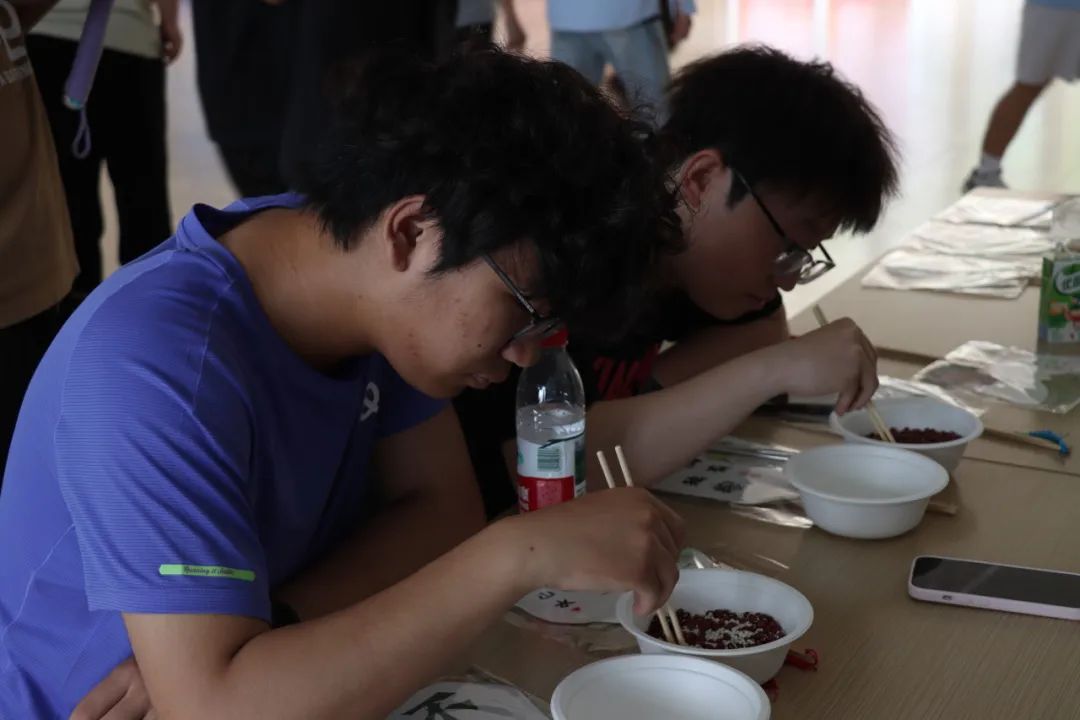 端午素有“食豆納福”之說,“紅豆呈祥”游戲應(yīng)運而生。參與者執(zhí)筷夾豆,在限定時間內(nèi)與時間賽跑,圍觀者的加油聲此起彼伏,一顆顆紅豆傳遞著豐收與吉祥的期許。