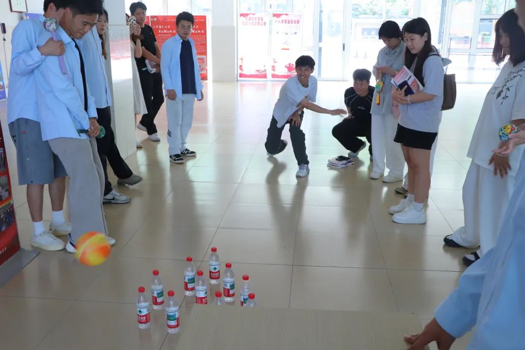 “一擊即中”延續(xù)古人“射五毒”習俗,以圓球擊瓶替代弓箭。師生紛紛上陣,在趣味挑戰(zhàn)中驅(qū)散“五毒”,守護平安。活動結(jié)束后,頗具特色的艾葉錘獎品備受青睞,成為大家愛不釋手的“端午寶貝”。