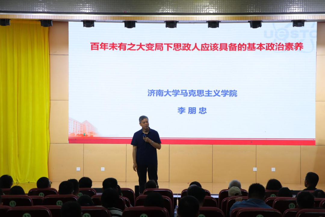 為全面提升育人質(zhì)量,推動思想政治教育工作創(chuàng)新發(fā)展,5月27日下午,我校特邀濟南大學(xué)馬克思主義學(xué)院李朋忠教授作題為《百年未有之大變局下思政人應(yīng)具備的基本政治素養(yǎng)》的專題講座。山東工程職業(yè)技術(shù)大學(xué)馬克思主義學(xué)院院長張娜及該院教師代表受邀參加,我校副院長李衛(wèi)東出席活動,學(xué)生工作處、馬克思主義學(xué)院負(fù)責(zé)人,各二級學(xué)院學(xué)工干部、全體輔導(dǎo)員、班主任代表及馬克思主義學(xué)院全體教師參加培訓(xùn)。