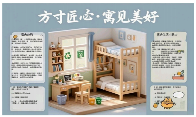 “方寸匠心?寓見美好”宿舍文化設(shè)計(jì)大賽的成功舉辦,為學(xué)校構(gòu)建特色學(xué)生社區(qū)育人體系奠定了堅(jiān)實(shí)基礎(chǔ)。未來,學(xué)校將繼續(xù)以學(xué)生需求為導(dǎo)向,開展更多形式多樣、內(nèi)涵豐富的社區(qū)文化活動,助力學(xué)生成長成才,推動“一站式”學(xué)生社區(qū)建設(shè)不斷邁向新高度。
