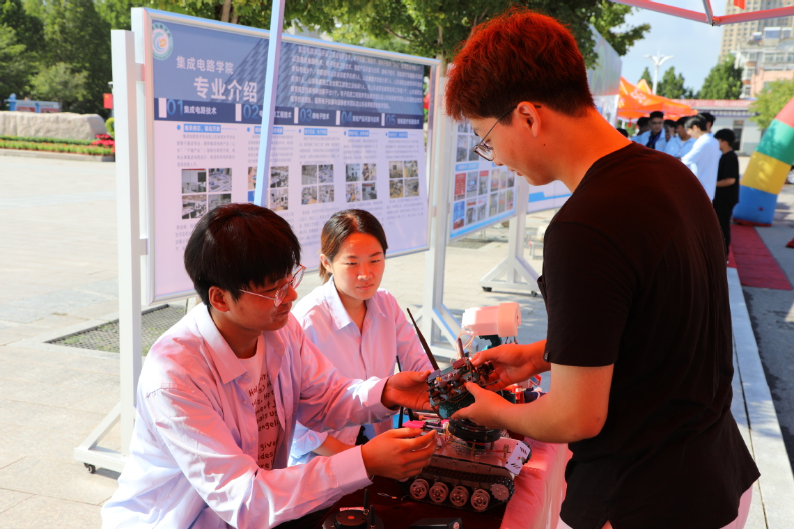 集成電路學(xué)院為新同學(xué)定制“啟航元?dú)獍保浑娮有畔㈩惿鐖F(tuán)同步亮相,展示電路設(shè)計(jì)、芯片組裝等成果,吸引新生駐足交流,在互動(dòng)中播下專業(yè)探索的種子。