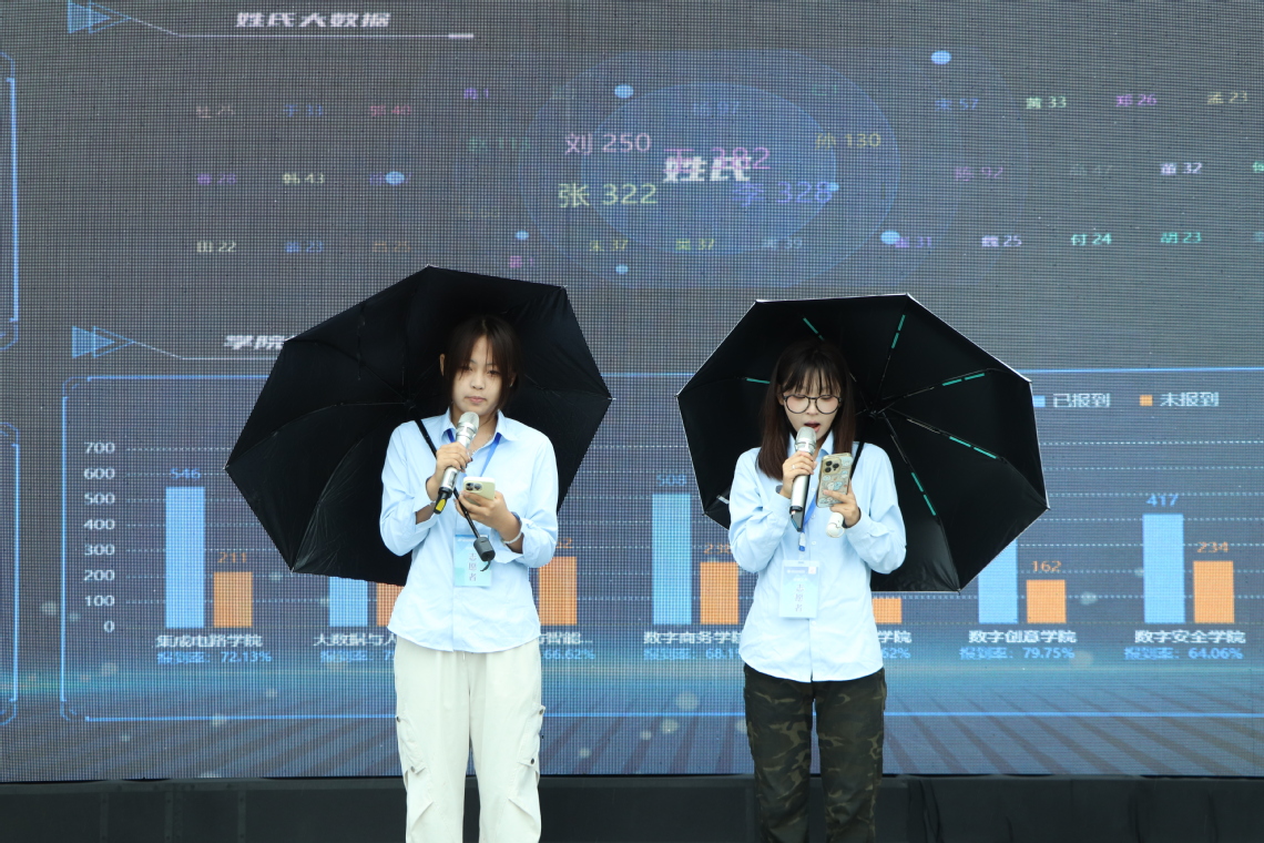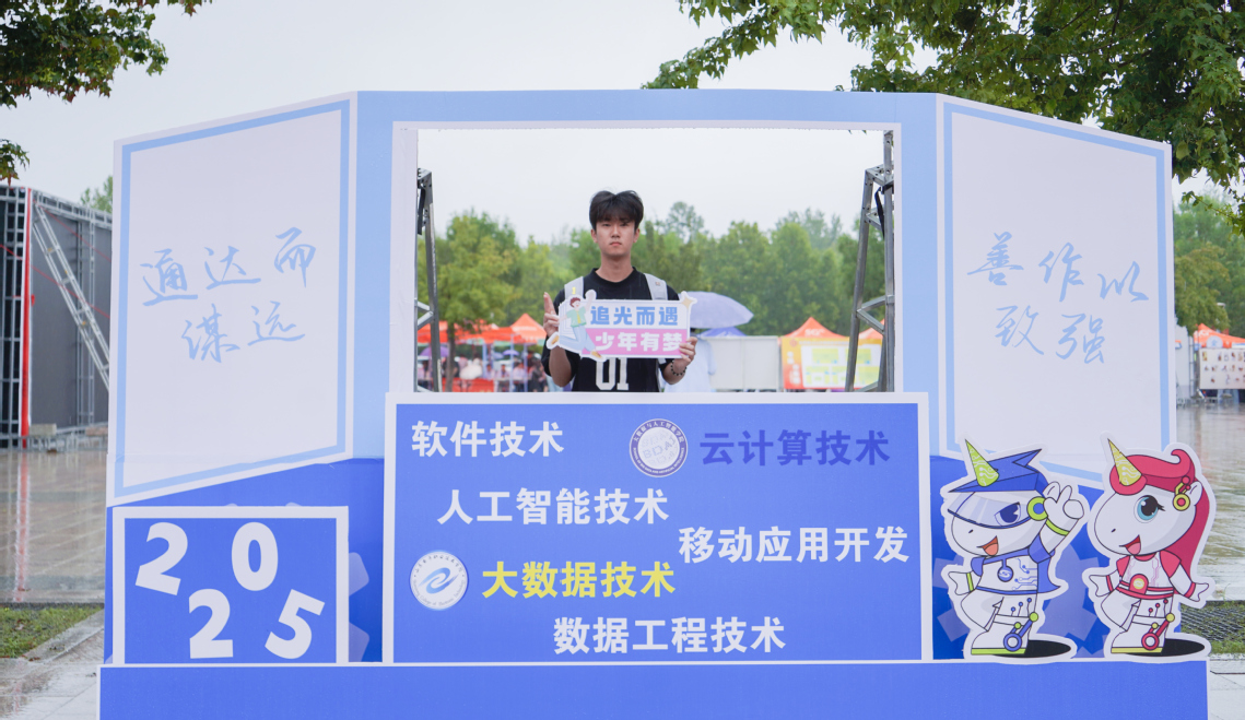 大數(shù)據(jù)與人工智能學(xué)院將750余名新生姓名拼成“你好,新同學(xué)”展板,讓大家在尋名中收獲歸屬感;設(shè)計(jì)融合學(xué)校精神與專業(yè)名稱的打卡點(diǎn),定格青春瞬間。